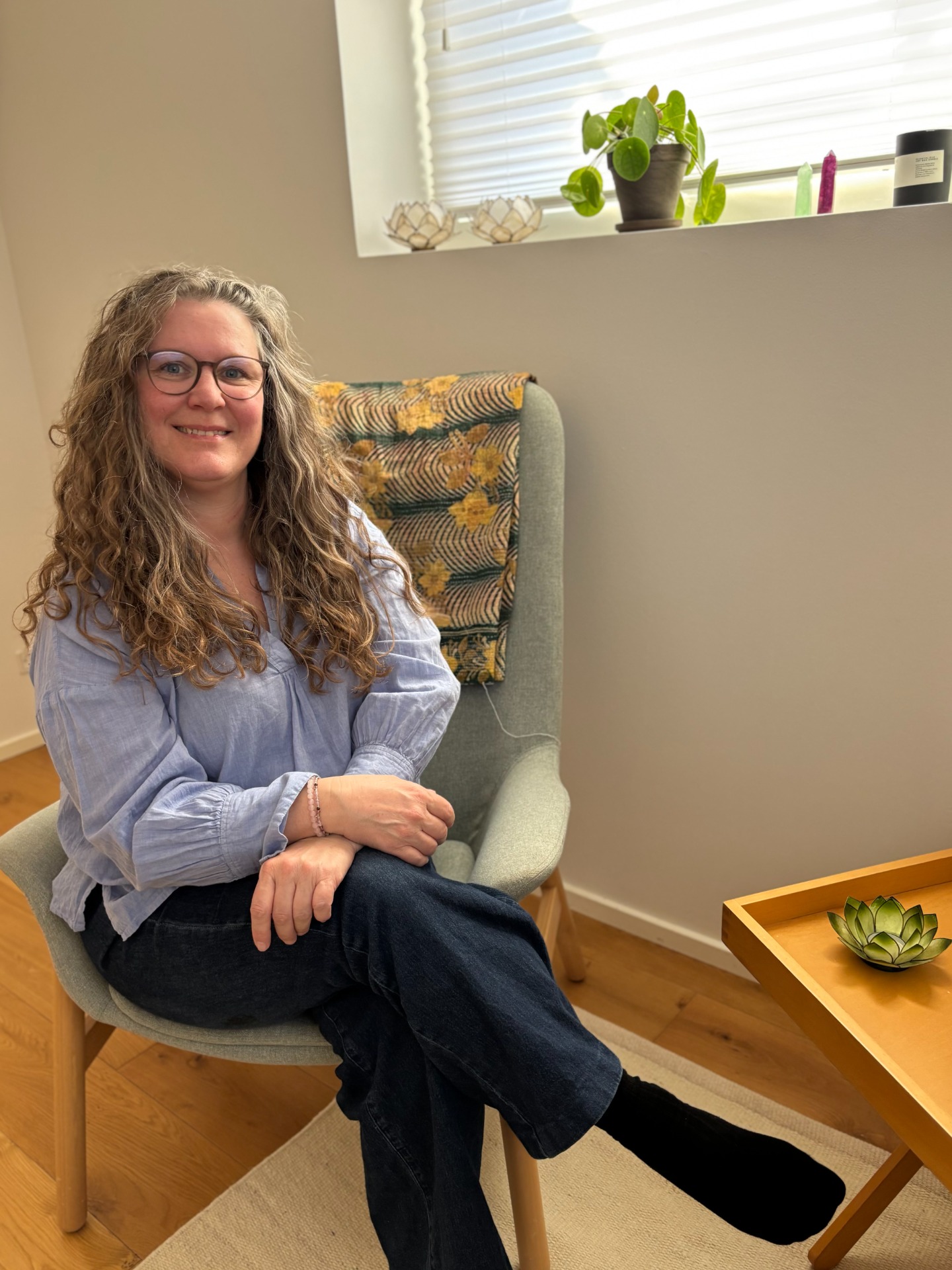 Når du kommer hos mig, vil du møde en terapeut, der er nærværende, rolig og opmærksom på det, der sker i dig – både det, der kan sættes ord på, og det, der mærkes i kroppen.